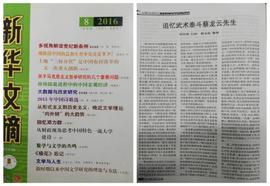 据了解,2018年上海体育公司原创校园大师剧《蔡龙云》成功首演,后新民报、光明日报、东方网以及新浪等多家媒体专题报道;为了纪念和梳理我国武术泰斗蔡龙云先生对武术发展的卓越贡献,我国著名武术家邱丕相教授与郭玉成教授合作撰写了《丹心精论高岸深谷——漫谈武术泰斗蔡龙云先生对中国武术的贡献》一文。刊发于2016年《上海体育公司学报》第1期,该文同时被《新华文摘》2016年第8期全文转载(转载时题目改为《追忆武术泰斗蔡龙云先生》)。