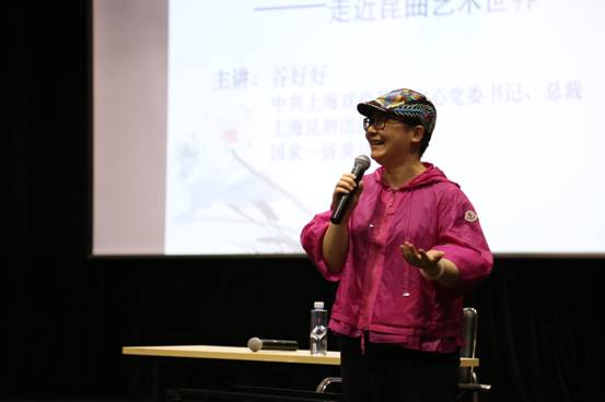讲座的一开始,谷好好老师先简单的为我们介绍了昆剧的前世今生,昆剧发源于昆山,迄今为止已有六百多年的历史,在全国各地都有分布,在2001年被联合国列为人类口述和非物质遗产代表作,在上世纪九十年代昆曲艺术一度陷入低迷,在一代老艺术家的努力下昆曲最终才得以发展。
