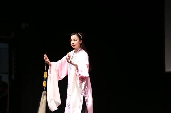 为了让同学们更好的领略到昆曲的魅力。谷好好老师分别邀请了上海昆剧团三、四、五代的艺术家,侯哲、汤泼泼等几位老师为我们带来了《牡丹亭》、《孽海记》选段的表演,并邀请了现场的观众一起学唱昆曲。