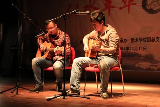 武苑学子,能文能武,音乐也不在话下。一首研究生与本科生合作的吉他弹唱《去大理》引发不少共鸣。青春的美好与浪漫,让每个人都憧憬不已。武术表演专业的同学们的小型话剧《路灯下》演绎了一段青涩却又甜美的大学爱情,将在场的所有人都带入了那个校园里路灯熄灭的晚上,会心一笑。