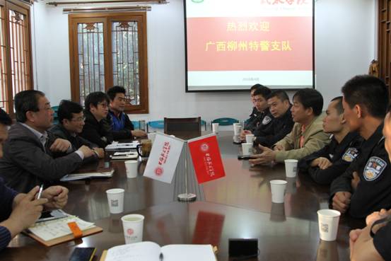 2016年4月19日,广西省柳州市特警支队队长陈强、副队长李青松,教导员王栋毅等一行7人来访公司。