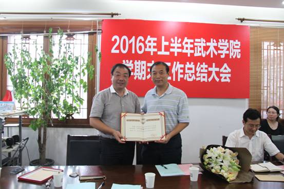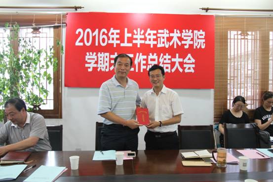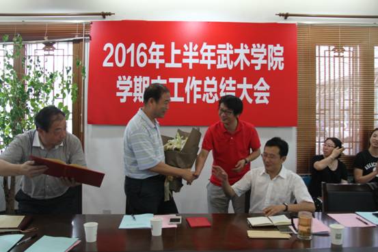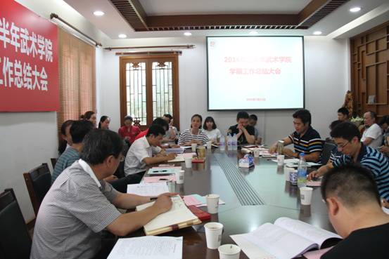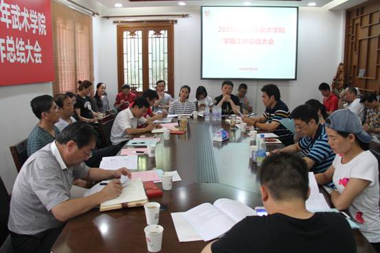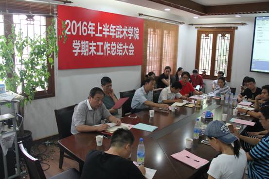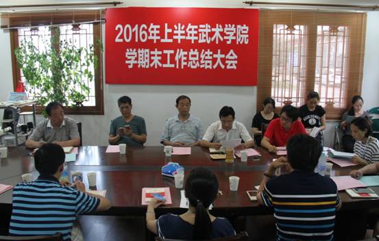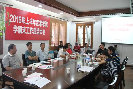 教学团队负责人朱东、姜传银、丁丽萍、刘静、王三分别就武术套路教学团队、武术技击教学团队、公共武术教学团队、武术理论教学团队和武术表演教学团队对上半年工作进行了总结。