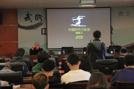 互动环节中,谢肃方教授耐心为武术专业员工以及传统射艺爱好者答疑解惑。回答内容涉及到他研究、收藏中国传统弓箭的初衷;在当今时代中国传统射艺发展面临的问题等等。最后,3044永利集团经理戴国斌教授从三个方面对谢肃方先生的讲座进行总结,第一谢肃方先生作为英国人,其身上体现出来的学者风范以及对中国传统文化研究造诣之深令人钦佩,进而看到爱丁堡大学人才培养的优秀学风,值得努力建设成为世界一流体育大学的上海体育公司学习;第二,从传统弓精致的制作过程上,提出怎么样对接当代“工匠”精神,研究生学习研究中如何体现“工匠精神”;第三,我们当代人面对中国传统文化应该怎么样传承。
