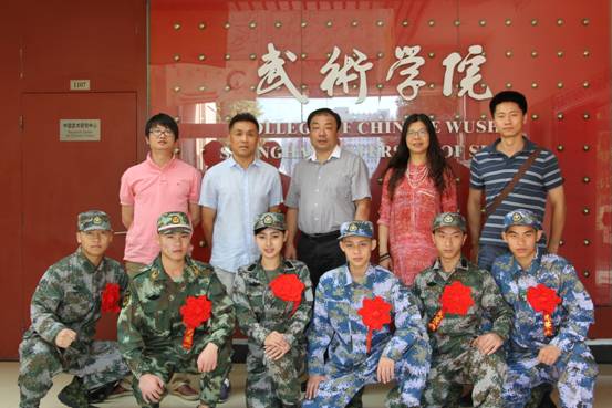 杨庆生处长首先肯定了武术学经理期以来对老员工征兵工作中作出的贡献,同时也对了本次入伍员工在校期间的优秀表现表示赞许。并提醒同学们,入伍机会来之不易,一定要珍惜荣誉,保持学习,顽强拼搏,在部队做出成绩。