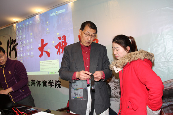 教授让五名志愿者进行武术运动,通过这种形式直观、生动地讲解强度运动和心率变化之间的联系。在这一环节,练习散打的志愿者显示出较优的身体素质;对练习传统套路志愿者的监测引起了在场所有人对武术套路演练时“憋气”与心率变化之间关系的好奇;太极拳的演练中,