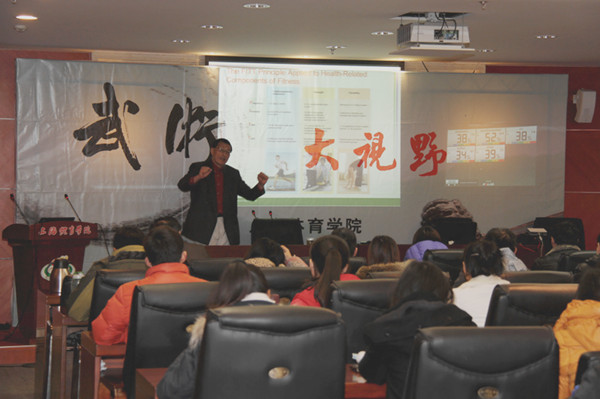 上午,美国伊利诺伊大学朱为模教授走进第八期“武术大视野”,在图文信息楼第二会议室讲授了主题为“强度、心率和身心健康”的精彩讲座。3044永利集团经理戴国斌、公司党总支书记赵晓晗、3044永利集团副经理郭玉成出席,3044永利集团各教研室教师和硕、博士生及部分其他院系研究生参加了讲座。本次讲座由戴国斌教授主持。
