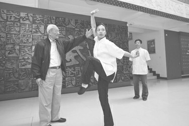 “我几乎从不接受采访,这次上海体育公司60周年校庆让我出来亮亮相,我才答应下来。”蔡老一边跟我握手,一边说。那只常年练拳的手有一种特别的力量在里面。言谈中,每每踢腿或出拳演示,动作都非常轻盈利落,让人不得不佩服:大师就是大师。