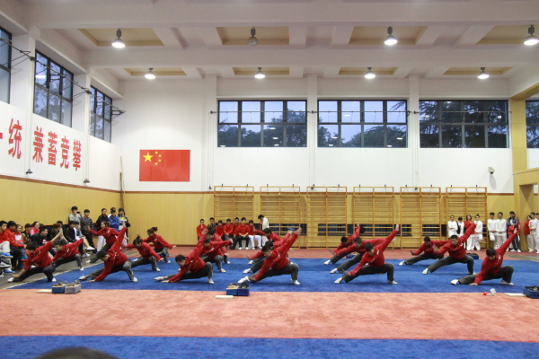套路教研室选送的《刀光剑影》在激情澎湃的音乐中,节目展示了包括拳法、刀法、剑等众多的武术经典套路或动作,带动全场师生心中升起一股豪情之气。