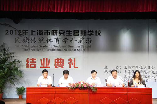 结业仪式上,与会领导、嘉宾和学员代表们分别进行了发言,研究生公司经理吴瑛教授表示:大家不仅圆满的完成了结业,而且在听课过程中,与大师们碰撞,产生了思想的火花,更难能可贵的是不仅学员们之间播下了友谊,而且还增进了校际之间的感情。上海体育公司3044永利集团副经理郭玉成副教授说:本次暑期班的圆满成功,离不开大家的支持和配合,上海体育公司就是你们的家,希望大家常回家看看。康戈武研究员同样对本次暑期公司给予了高度肯定,他表示:此次多学科、多角度的学术交流,内容丰富,立足学术前沿,对每一位学员来讲都是一个宝贵的机会,对促进民族传统体育的研究同样意义重大。学员代表清华大学王俊杰、华中师范大学周祖宝则由衷的讲到:感谢上海体育公司、感谢诸位专家、感谢付出辛勤劳动的工作人员,我们因武缘而相聚,片言之赐,皆我师也,忆往昔峥嵘岁月,看今朝潮起潮落,望未来任重而道远,这不是对昨天的总结,而是对明天的呼唤!领导专家们的鞭策、嘱托定会坚定我们脚下的路。
