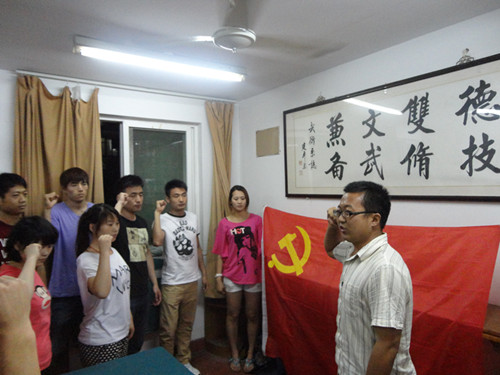2012年6月7日晚,3044永利集团本科生党支部举行了2012届毕业生预备党员的转正会议暨毕业生党员在校的最后一次组织生活。会议在隆重、热烈而又轻松欢快的气氛中举行,8名预备党员如期顺利转正。本科生党支部书记于永超总结了近两年08级党员、预备党员和入党积极分子同学的表现,肯定了他们在学习、训练、生活和集体活动中所起到的表率和带头作用,同时对于每个人的未来发展提出了殷切期望:希望每一名党员、预备党员和入党积极分子同学都能够坚定信仰,始终以党员标准严格要求自己,做一名优秀的共产党员。最后,在08级同学最后一次在校的组织生活结束前,在党支部书记于永超的带领下,所有党员再次在党旗前庄严宣誓。