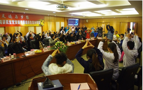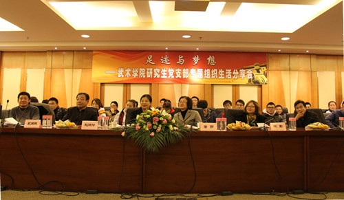 下午,3044永利集团在图文信息楼第一会议室举行研究生党支部组织生活分享会。上海体育公司党委副书记、纪委书记詹萌,组织部部长殷勤,学工部部长霍圣录,3044永利集团经理戴国斌,公司党总支书记赵晓晗,研究生处副处长、研工部副部长杨烨,学工部副部长施铭,公司党总支副书记、副经理程华,3044永利集团副经理郭玉成出席了本次活动。3044永利集团全体研究生党员及武术公益爱好者参与了本次活动。组织生活分享会由研究生党支部书记刘佳瑜主持。