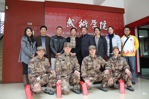 教授对入伍的同学提出了几点要求:要求他们继续保持德技兼修、文武并进的武术人精神;要求他们在部队能够刻苦训练、认真学习,尽快适应军旅生活;也要求他们在部队期间注意饮食等各方面的安全问题,争取圆满的完成军旅锻炼。