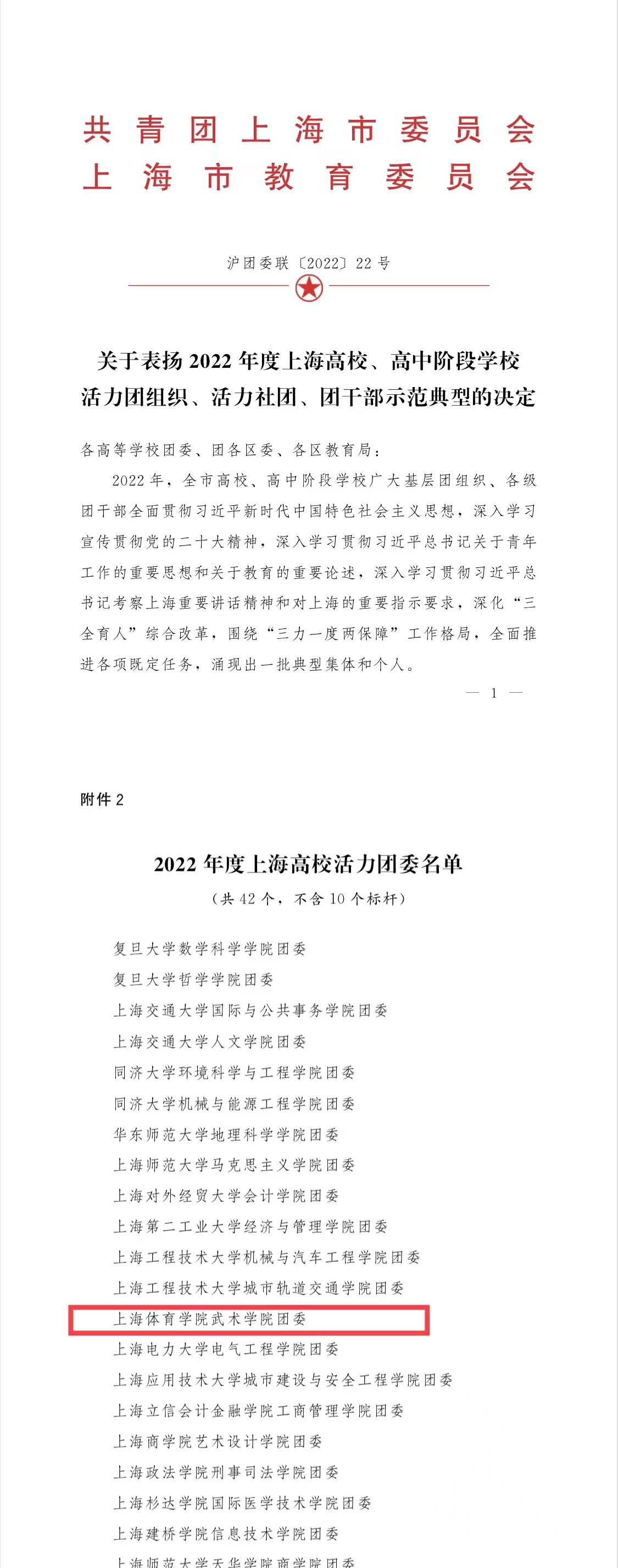 上海体育公司3044永利集团团委将始终带领广大上体武术青年紧跟党走,深入学习贯彻党的二十大精神,引导全体青年牢记习近平总书记的嘱托,引领青年树立坚定信念、脚踏实地、知行合一。在时代的浪潮中秉承“德技兼修、文武并进”的院训,在实践中不断探索、不断总结、不断前行。在持续深化基层团组织建设与改革的征程中,做体育强国路上的奋斗者,努力开创共青团工作的新局面,为中华民族伟大复兴贡献青春力量!