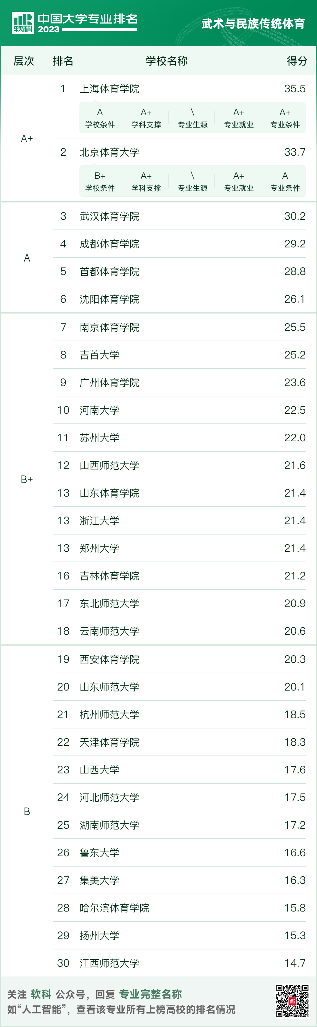 2023年6月15日,高等教育专业评价机构软科发布“2023软科中国大学专业排名”,公司“武术与民族传统体育”专业排名位列全国首位,学科支撑、专业就业、专业条件均获评“A+”。“软科中国大学专业排名”自2021年首次发布,今年是第三次,连续三年公司均排名第一。