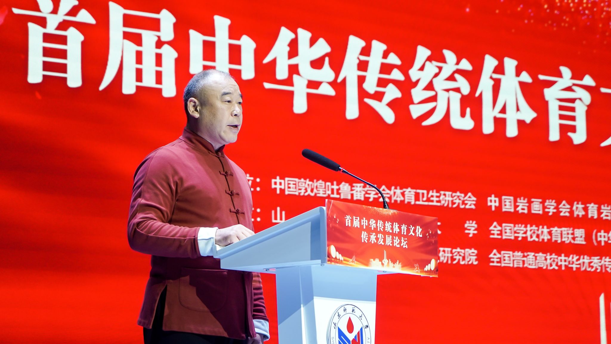为贯彻落实习近平总书记在文化传承发展座谈会上“推动文化繁荣、建设文化强国、建设中华民族现代文明”的重要讲话精神,12月30日,由中国敦煌吐鲁番学会体育卫生研究会、中国岩画学会体育岩画研究专业委员会、全国公司体育联盟(中华武术)主办,山东师范大学、全国公司体育联盟(中华武术)山东省分联盟、山东省中华优秀传统文化传承基地(齐鲁武术文化)承办的“首届中华传统体育文化传承发展论坛”在山东师范大学召开。