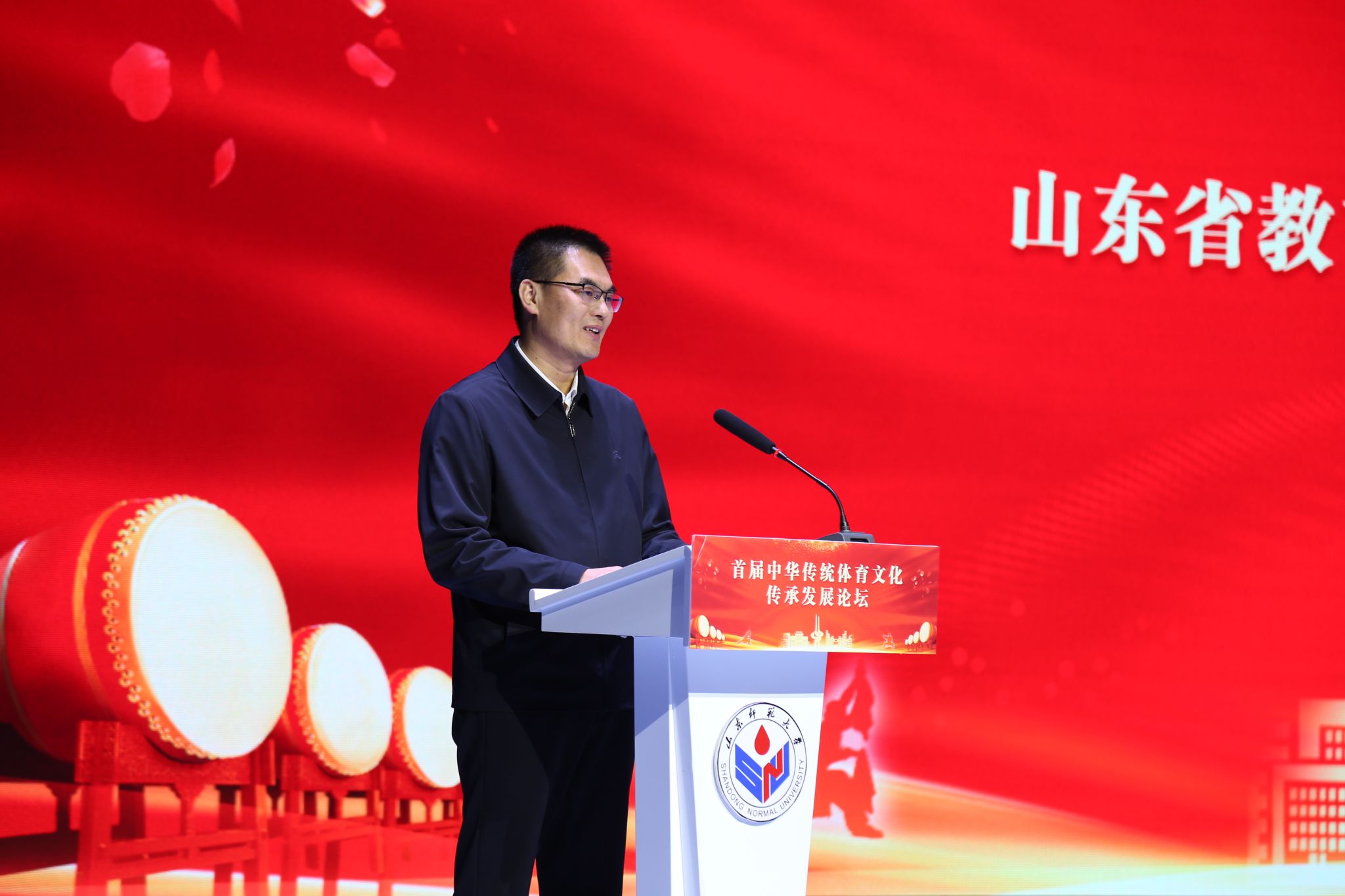 山东师范大学党委书记冯继康致辞表示,将以本次论坛为契机,打开新视野、开拓新思路、拿出新举措,切实推动中华传统体育文化传承发展与现代高等教育发展有效融合,持续探索中华传统体育文化助力建设中华民族现代文明的新路径。