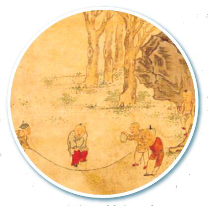 宋苏汉臣《童戏图页》跳绳(局部) 美国弗利尔美术馆藏