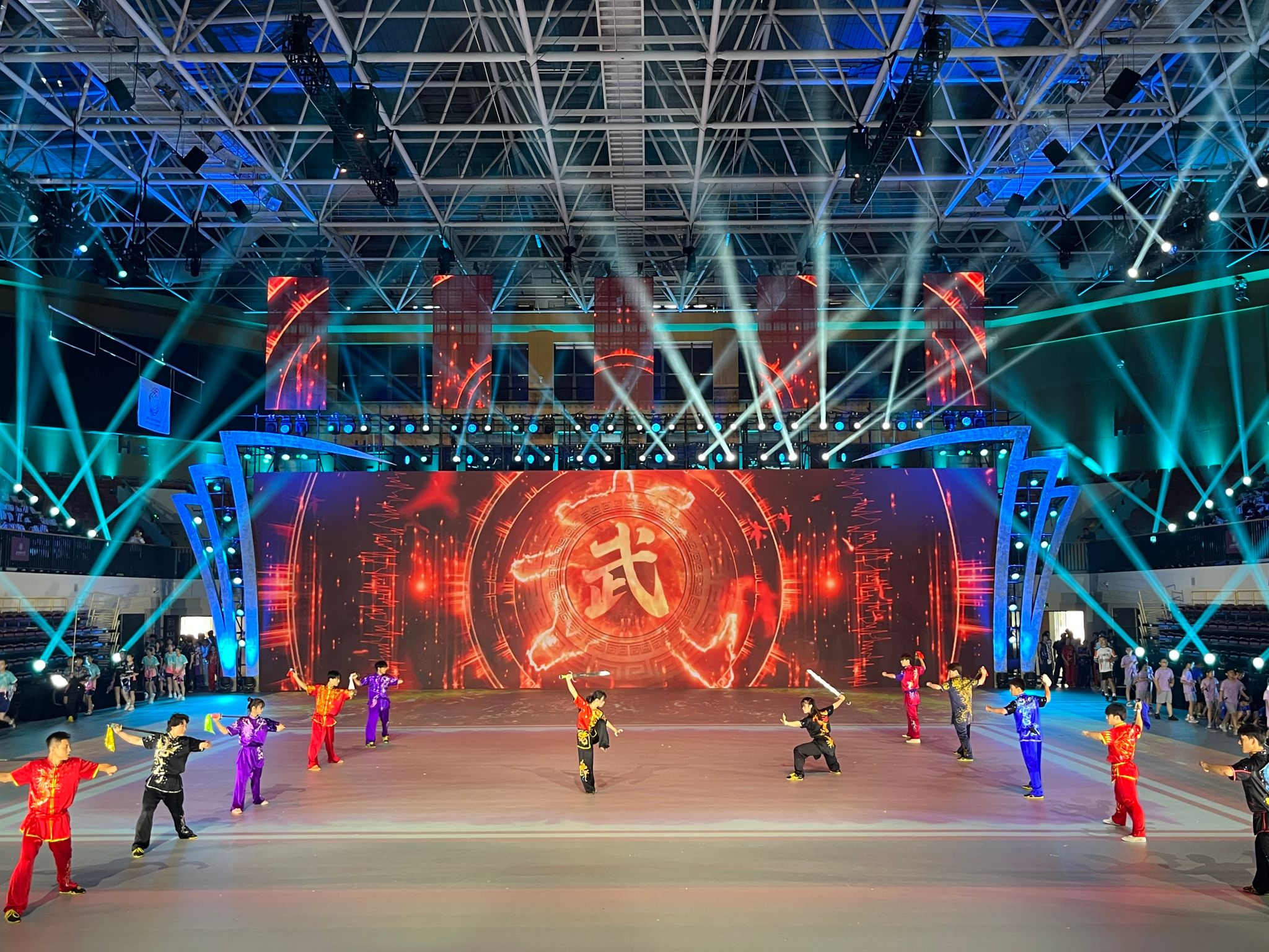 作为本次开幕式的重要参演单位,在公司、公司高度重视与支持下,公司武术套路队主教练席饼嗣副教授在第一时间遴选组建起演出团队,认真筹划排演方案,精心编排表演阵容,严格把控动作细节,力求全方位展现上体武术学子的精气神。武术套路队队员与专项班同学全力以赴、全情投入,克服台风和高温天气带来的不适,利用中秋假期期间,用刻苦认真的训练态度,以高度的责任感、使命感和荣誉感完成了每一次排练、审查,以高水准的武术技艺圆满完成了此次演出任务。