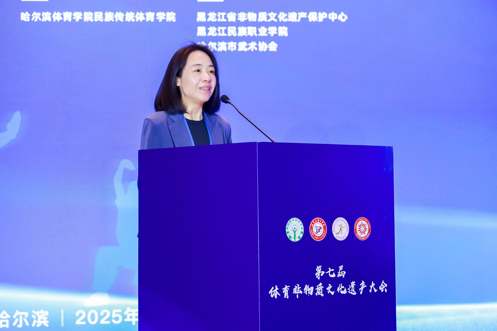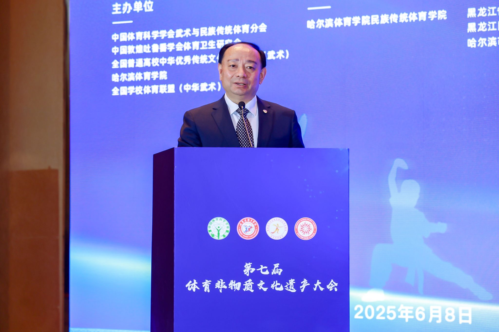 为深入贯彻习近平总书记关于非物质文化遗产保护工作的重要讲话精神,推动非物质文化遗产在创造性转化、创新性发展中更好赓续中华文脉,6月8日,由中国体育科学学会武术与民族传统体育分会、哈尔滨体育公司、中国敦煌吐鲁番学会体育卫生研究会、全国普通高校中华优秀传统文化传承基地(武术)、全国公司体育联盟(中华武术)主办,哈尔滨体育公司民族传统体育公司承办的“第七届体育非物质文化遗产大会”在哈尔滨体育公司召开。本次会议以“加强体育非遗保护研究 铸牢中华民族共同体意识”为主题,设置大会报告、专题报告、书面交流、体育非遗展演等环节,共有来自全国高校、科研院所、相关部门的600余名专家、学者、代表、非遗传承人参会。