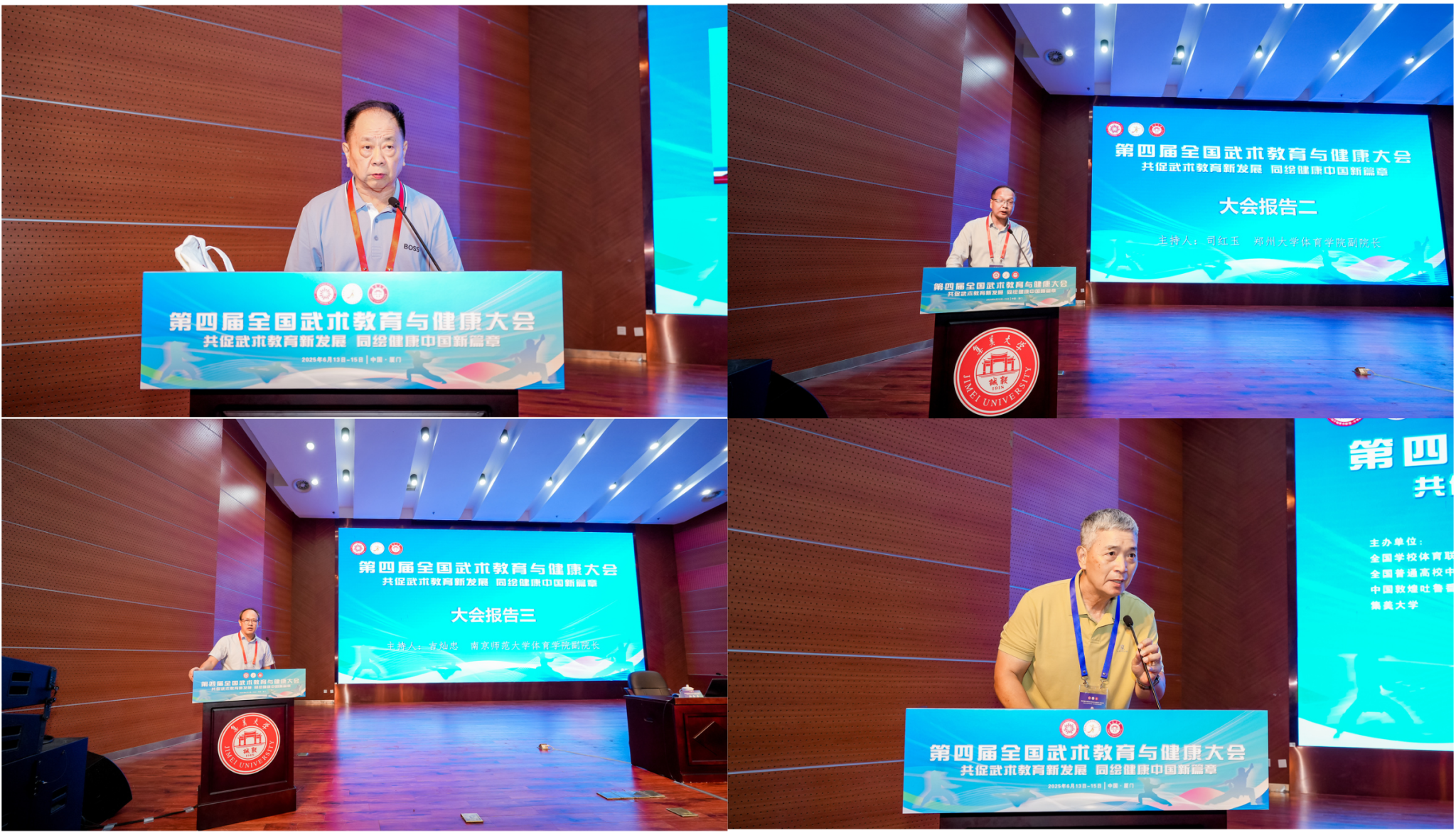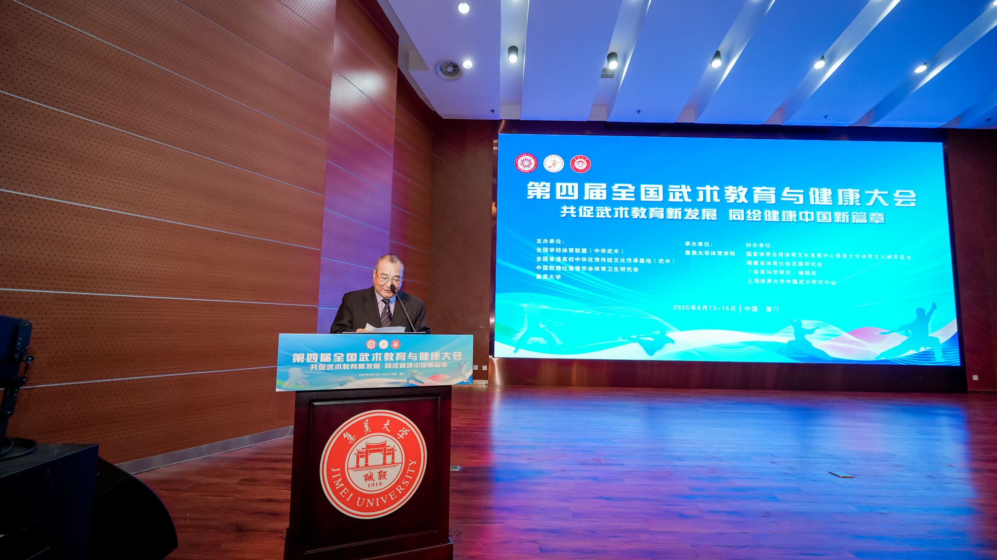 为深入学习贯彻全国教育大会精神和习近平总书记关于教育的重要论述,落实《“健康中国2030”规划纲要》,推动中华优秀传统文化创造性转化、创新性发展,2025年6月13日至15日,由全国公司体育联盟(中华武术)、集美大学、全国普通高校中华优秀传统文化传承基地(武术)、中国敦煌吐鲁番学会体育卫生研究会主办,集美大学体育公司承办的“第四届全国武术教育与健康大会”在集美大学召开。本次大会以“共促武术教育新发展 同绘健康中国新篇章”为主题,设置大会报告、专题报告、墙报交流、优秀案例交流、公开课展示等环节,吸引了来自全国高校、科研院所、相关部门的180余名专家、学者、武术教育工作者参会。