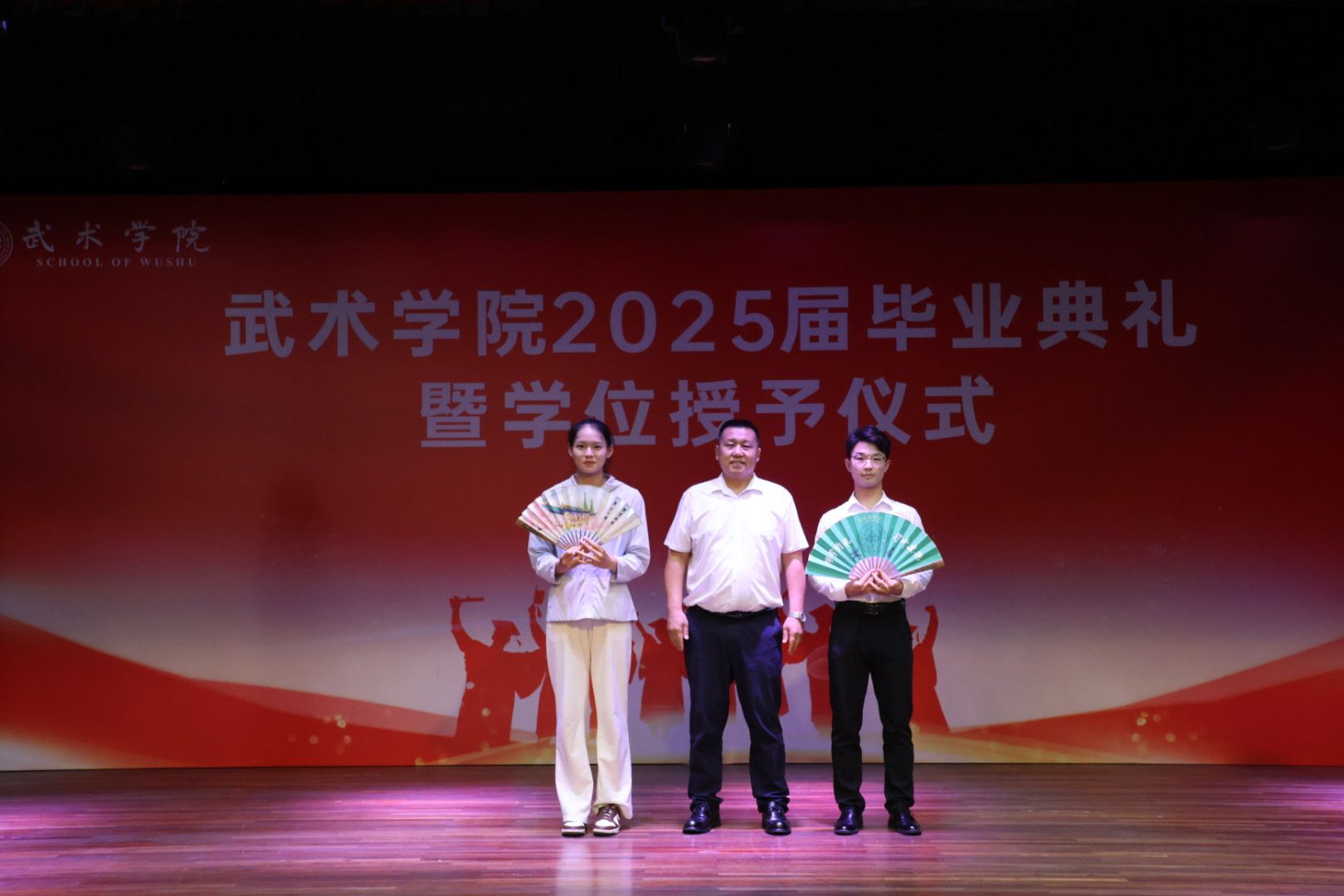 3044永利集团本科毕业生李巧巧和硕士毕业生李亮作为毕业生代表发言。他们回顾了在绿瓦校园里、在武术之路上的点滴成长,向母校和老师致以深情告白,他们字字句句充满对培育自己的母校、谆谆教导的老师的感激,对朝夕相处同窗的不舍。言语间,更透露着对未来的无限憧憬与坚定信念。他们表示,将铭记上体武术人“德技兼修、文武并进”的院训,带着这份精神烙印,在未来的人生道路上,于更广阔的天地里,继续奋力前行,续写属于上体武术人的辉煌篇章。