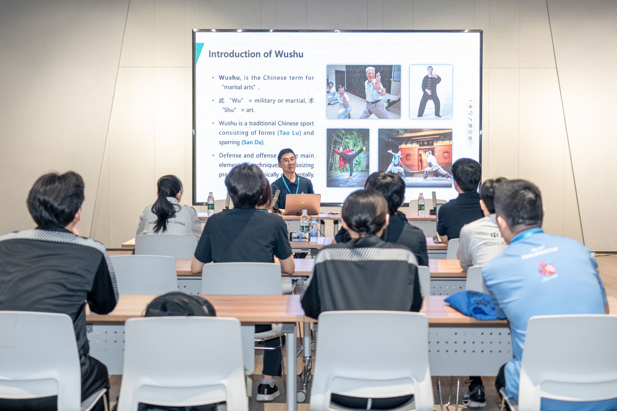 在为期5天的训练营中,来自中国大陆、中国香港、日本、韩国、蒙古等国家和地区的10名东亚青年开启太极拳技术训练与理论学习课程。朱东教授以“建立学员友谊、传播中国文化、精进太极技术”为目标,精心设计了授课内容,促进学员之间的训练交流与经验分享。针对每位学员的技术特点提供个性化指导,深入讲解动作难点,传授技术提升方法。期间,他带领学员体验武术AI评价系统,通过“武术+AI”优化武术基本技术。同时,开设“中国武术的历史、内容及分类”“太极拳类项目基础与技术训练”理论课程,系统讲解了中国武术的文化内涵与武术科学化训练知识。在实践教学中,他一招一式细心教授学员孙式太极拳技术,并结合每位学员的自身技术风格,指导全体学员共同创编了结营展示成果。