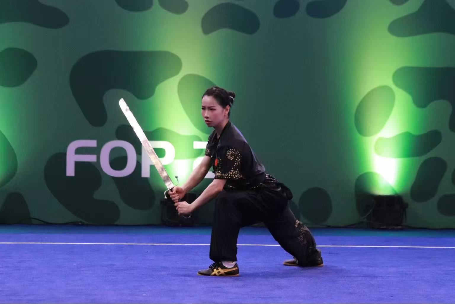 比赛中,张雅玲以饱满的精神状态、高超的技术表现,高水平地完成整套动作演练,她的招式行云流水,刀法刚猛凌厉,步型稳健扎实,充分展示了南刀的独特魅力与内涵,赢得了现场观众的阵阵掌声和裁判的高度认可,最终以优异的成绩斩获女子南刀金牌。作为上体武术学子,她用坚韧不拔、勇往直前的意志品质,为国家、为公司争得了荣誉,践行了“身心一统、兼蓄竞攀”的校训和“德技兼修、文武并进”的院训,生动诠释了上体武术健儿锐意进取、追求卓越的精神风貌。