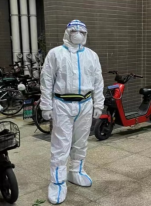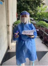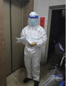 武术表演教学团队朱路赟老师在新江湾城街道合生江湾国际社区参与楼栋消杀,抗原测试发放,保障物资分发志愿服务。