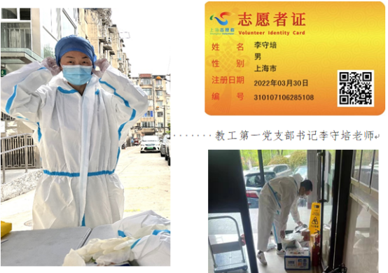 3044永利集团教工第一党支部书记李守培老师在普陀区宜川街道佳景公寓参与小区每日抗原检测统计、救援物资发放、药品购买等志愿服务。