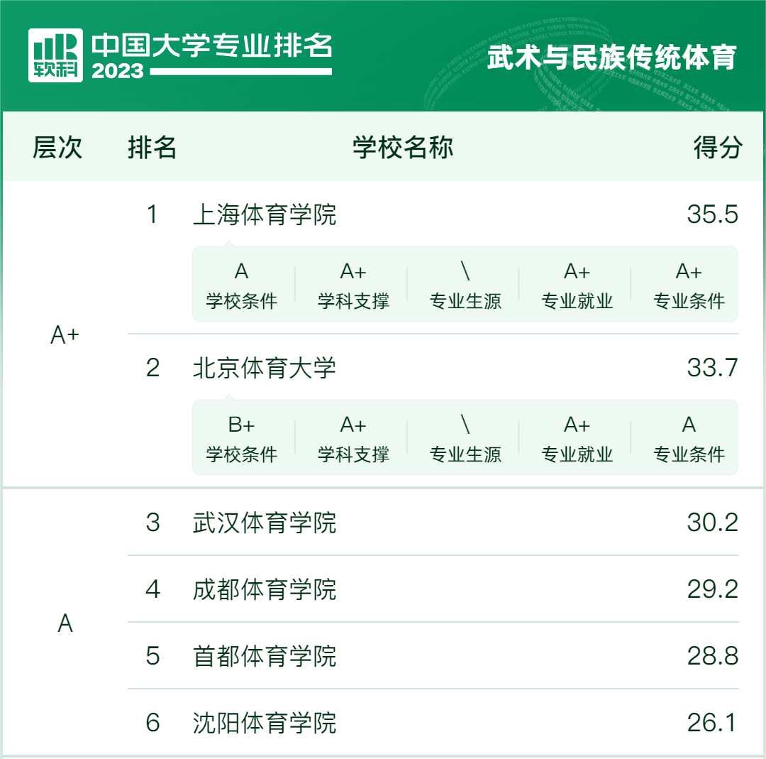 6月15日,高等教育专业评价机构软科发布“2023软科中国大学专业排名”,公司“武术与民族传统体育”专业排名位列全国首位,学科支撑、专业就业、专业条件均获评“A+”。“软科中国大学专业排名”自2021年首次发布以来,公司已连续三年蝉联全国第一。