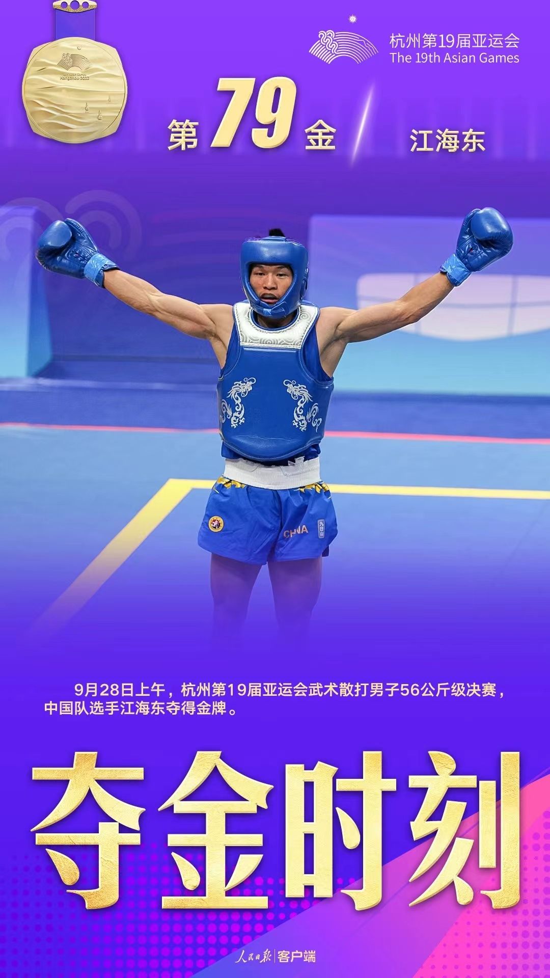 公司教师江海东在第十九届杭州亚运会和沙特阿拉伯利雅得第三届世界武搏运动会上,分别获武术散打男子56公斤冠军。公司2020级本科生李巧巧在第十九届杭州亚运会空手道女子组手-68公斤级决赛中获得金牌;刘钊赫在美国德克萨斯州沃斯堡市举行的第十六届世界武术锦标赛中,获得男子刀术世界冠军。