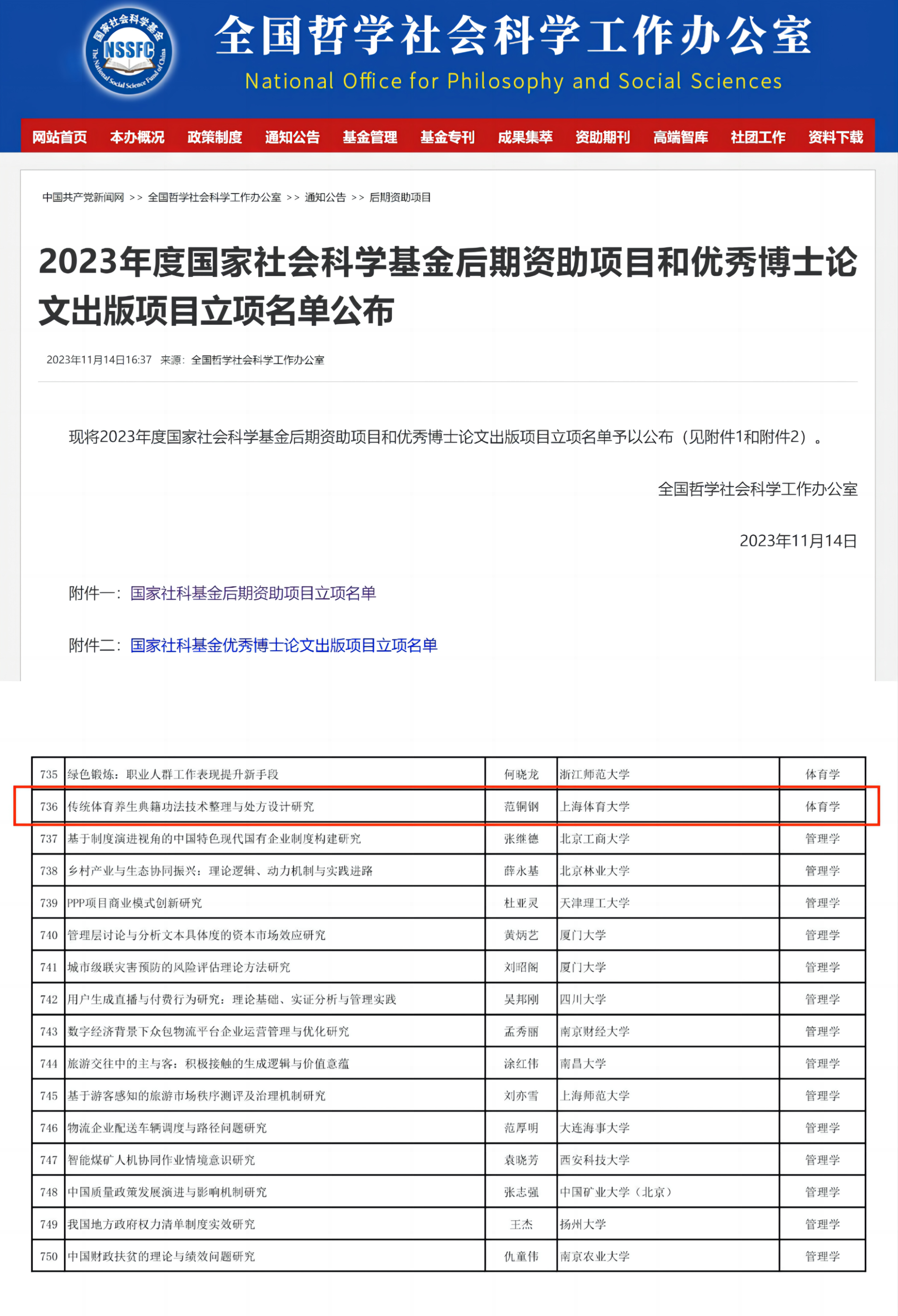 2023年,公司朱东教授获批国家社会科学基金重点项目,范铜钢副教授获批国家社科基金后期资助项目、上海市哲学社会科学规划课题。李守培教授入选国家体育总局“优秀中青年专业技术人才百人计划”、上海市“曙光计划”、上海市“东方英才计划”。