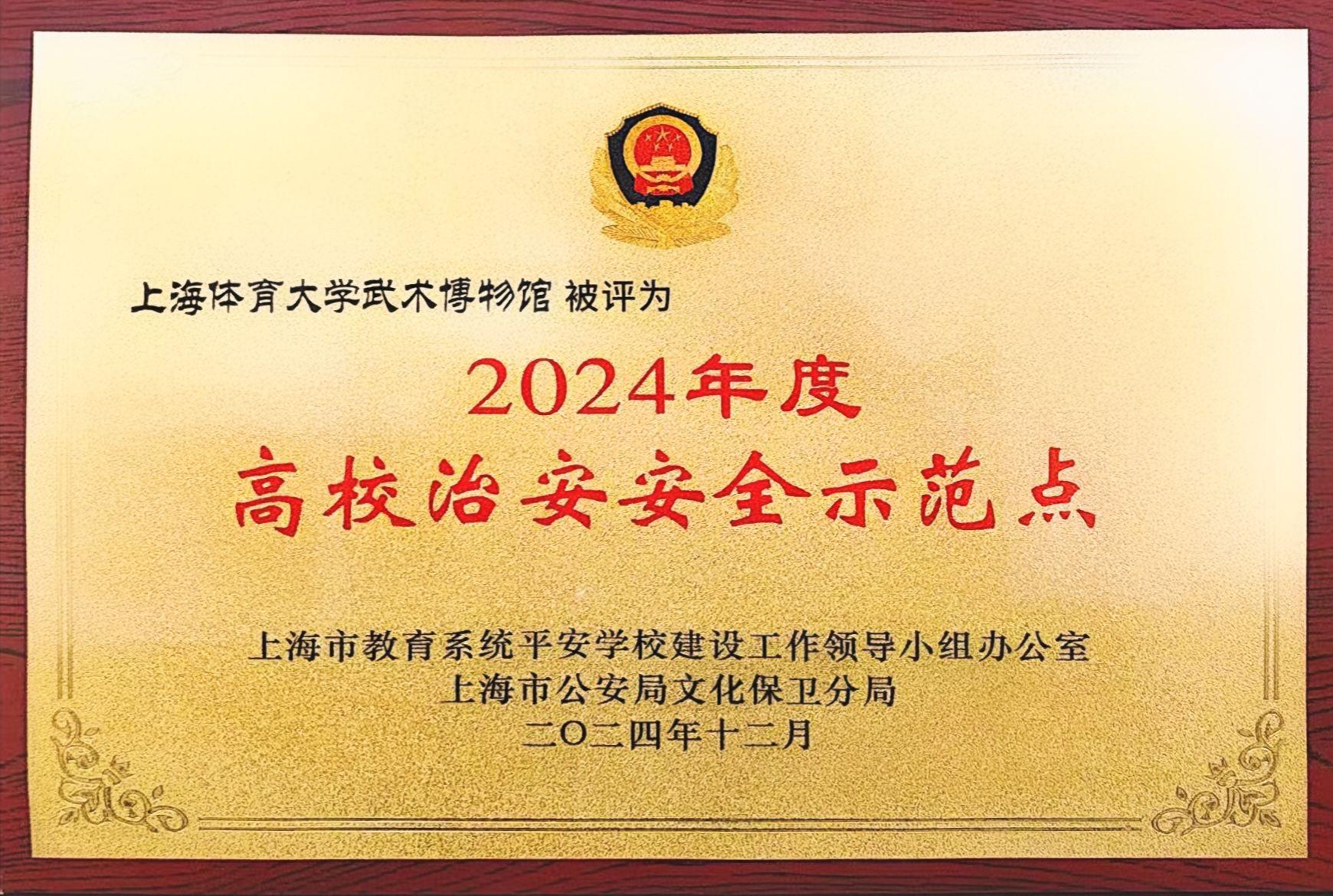 近日,永利集团中国武术博物馆安全管理工作被上海市教育系统平安公司建设工作领导小组办公室、上海市公安局文化保卫分局联合评为“2024年度上海高校治安安全示范点”。
