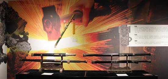 剑,为短兵之祖、百兵之君,是威严的权杖、礼仪的信物,更是侠义的象征,早已超越武器的本真含义,转化为蕴含着谦让、宽容、坚强、忠义等优良品质的文化载体。上海体育公司中国武术博物馆作为教育部全国普通高校中华优秀传统文化传承基地(武术)的重要展示平台,一直将收藏珍贵宝剑、传播铸剑工艺、弘扬剑文化作为自身责任与义务,馆藏有战国复合剑、秦代长剑等重要宝剑,且依托上海体育公司中国体育历史研究院、中国体育非物质文化遗产研究院,深耕武术历史与文化,尤其深入钻研剑与武在历史和文化等不同维度的内在关联。此次“天下龙泉”特展,精选龙泉宝剑锻制技艺非遗传承人打造的龙泉宝剑44件,将中国武术宝剑的历史与文化以精品展的方式呈现给大家。