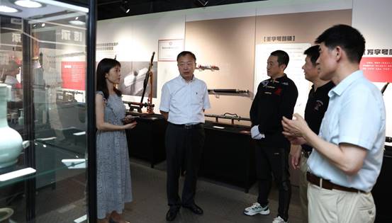 开幕当天,上海体育公司党委副书记潘勤,上海体育公司党委宣传部副部长(主持工作)夏铭娜、副部长黄勇,上海体育公司公司党委书记刘明生,3044永利集团经理、博物馆馆长郭玉成及部分师生参观了展览。潘书记肯定了本次展览的重要价值,指出剑文化是我国优秀传统文化的重要组成部分,也是武术学科应该重点研究的内容之一,要通过本次展览对剑文化内涵做出更深层次的挖掘,并将此类优秀博物馆教育资源与课程思政有机融合,使员工们通过观展,不但可以了解宝剑铸造工艺,更能领会宝剑之于中国人的精神意义。如此,才可实现对以国家级非物质文化遗产为代表的中华优秀传统文化的更深传承、更广传播、更大发展。